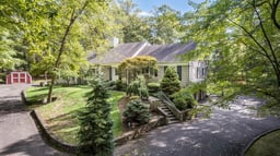 Serenely situated on over two wooded acres in a prime cul-de-sac location, this Expanded Ranch offers the ultimate in tranquil privacy. The residence is well suited for entertaining and comfortable living with an open floor plan that includes elegant formal Living and Dining Rooms, beautifully appointed Chef's Kitchen that opens to the Family Room with double-sided fireplace, and a Sun Room/Bar with lovely views of the outdoor grounds. The first floor Primary Suite features an en-suite Bath and Sitting Room with walk-in closets. Additional highlights include a temperature-controlled Wine Room, lower level Recreation Room with walk-out, whole house generator, walk-in Attic with finishing potential. Step outside to your backyard oasis with in-ground pool, expansive patio and circular driveway that wraps around the rear of the property. Whether you're entertaining guests or simply enjoying nature, the home blends seamlessly with its peaceful outdoor setting - a rare find in today's market.